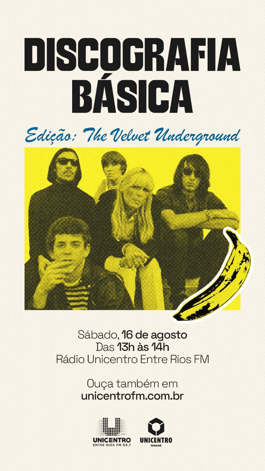 Neste programa, destacamos os quatro primeiros álbuns da banda — de The Velvet Underground & Nico (1967) a Loaded (1970) —, que juntos formam uma das trajetórias mais ousadas, provocativas e influentes da história da música popular.