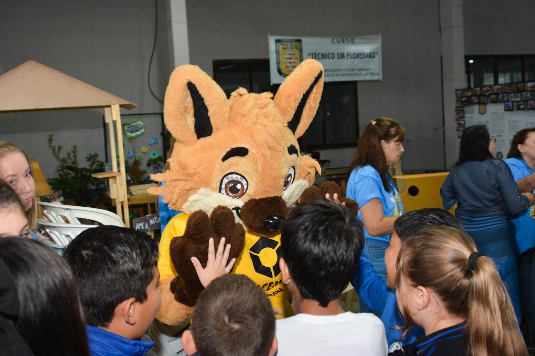 Tales, o mascote da Unicentro, fez sucesso com as crianças que visitaram a feira (Foto: Coorc).
